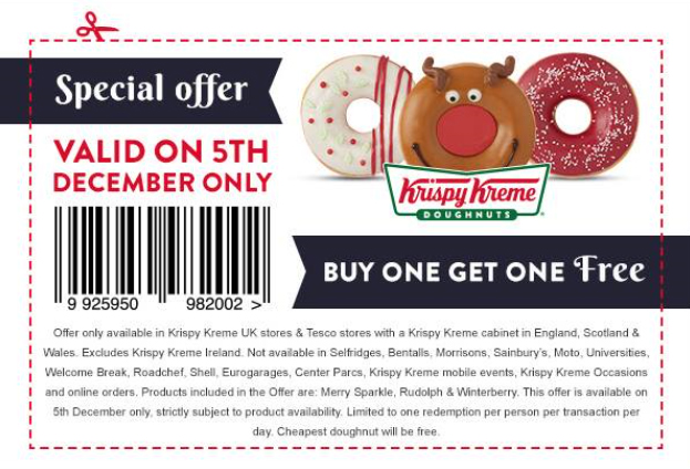 Krispy Kreme are providing you purchase one get one free at Krispy Kreme shops and Tesco shops with Krispy Kreme cupboards.Merely hit “GET FREEBIE” button beneath on your coupon to make use of at your native Krispy Kreme shops and Tesco shops. Get Freebie